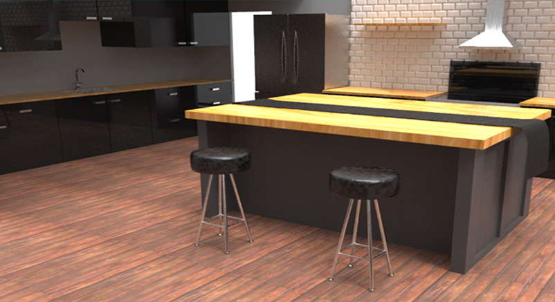 Once I had sketched out the interior, I used it to produce the assets and then place them with in the home. The next step was to texture each individual pieces. Below is how the home looks with the assets textured and rendered out.
